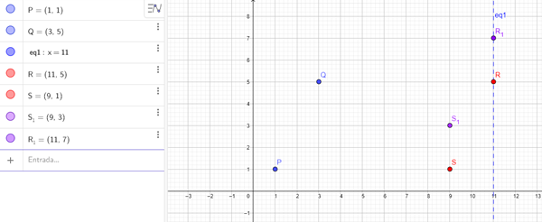 Si P(1,1) y Q(3,5) son los vértices de un paralelogramo y que R tiene una abscisa 11, ¿Cuáles serán las coordenadas del punto S(x, y) y la ordenada de R?
