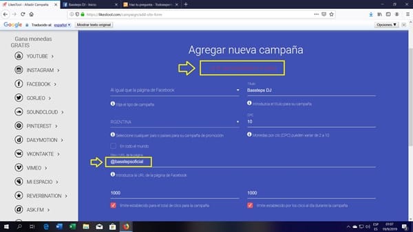 No puedo añadir la url de mi página de facebook en likes tool