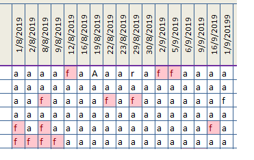 Tengo una lista de asistencia en la cual voy poniendo diferentes estados de los estudiantes (A: asistencia(verde), F: falta (Color rojo), L, licencia (azul)) y con formato condiciona se colorean de acuerdo al estado.