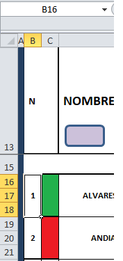 En otra hoja tengo la lista de estudiantes y sus calificaciones, en la cual quisiera que se marque con colores de acuerdo al estado en la asistencia :