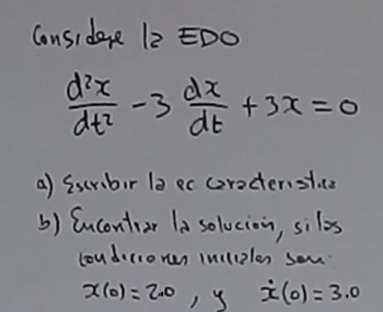 Le he echado una mirada por encima, veo lo que hiciste. El problema es que si te fijas la función que estamos derivando en este caso es x, no y, como es lo habitual, y la variable es t, de ahí viene el error. La Edo no es y(x)''-3y(x)'+3x=0, es x(t)''-3x(t)'+3x=0. El método que usaste está bien, pero no para este caso - Alejandro Salazar