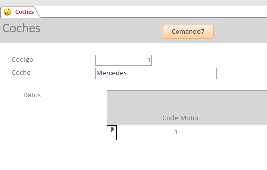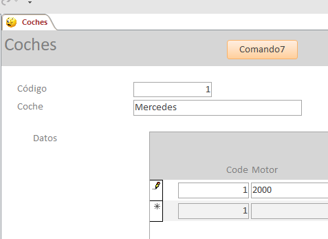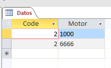 En un formulario que muestra los campos código, coche y motor, quiero poner un botón que me añado un registro nuevo en la tabla datos con el código del formulario (esto lo tengo) y quiero que ese campo motor que es de la tabla datos se mueva a un nuevo registro para poder escribir otro valor