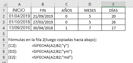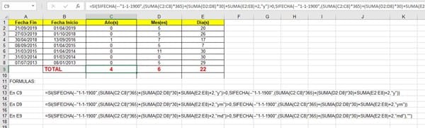 Como calcular la sumatoria de años, meses y días - excel