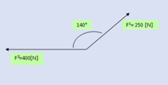 F1=250(N), F2=400(N), 140°