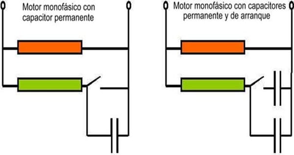 Si un motor tiene que trabajar con mucha carga desde su arranque y además va a trabajar durante bastante tiempo, lo más eficiente es ponerle 2 condensadores, una para que arranque cómodamente con el condensador de arranque y otro permanente que es el de trabajo con menor capacidad para que mejore el factor de potencia durante las horas que este trabajando.