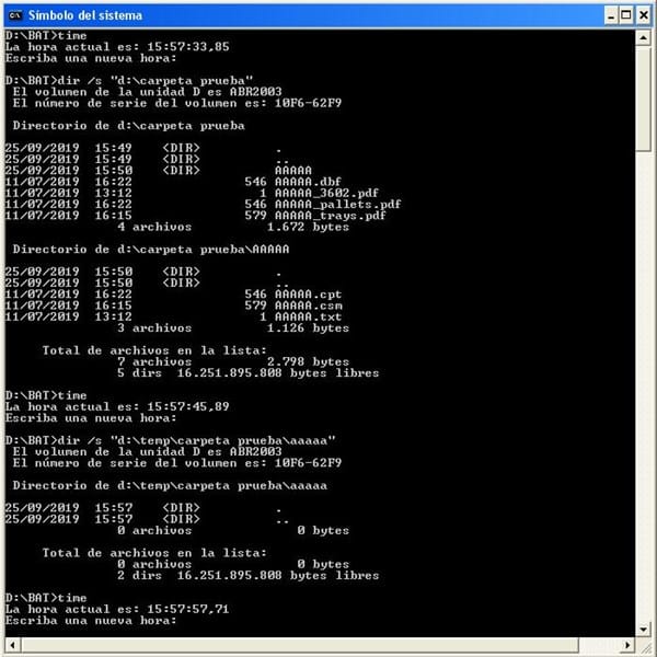 Incluyo comandos TIME para que puedas asegurarte de que ha sido todo consecutivo.