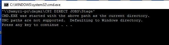 Puede darme alguna idea..? No se que me quiere decir con "UNC paths are not supported"