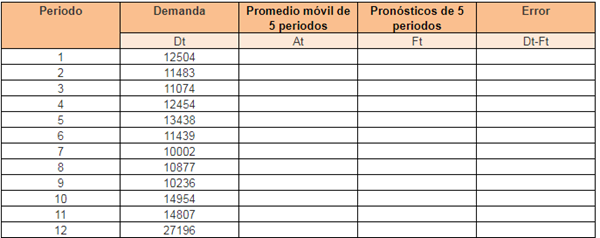 - A partir de la información anterior y basándote en el contenido del tema de promedios móviles, elabora el pronóstico.