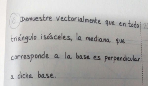 Demuestre vectorialmente que en todo triangulo isósceles, la mediana que corresponde a la base es perpendicular a dicha base