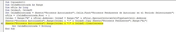 Sub Copiando() Dim CeldaEncontrada As Range Dim nFila As Long Dim Celdai$, Celdaf$ Set CeldaEncontrada = Sheets("Hoja1").Cells.Find("eltítuloexactoaquí") nFila = (CeldaEncontrada.Row) + 1 Celdai = Range("A" & nFila).Address: Celdaf = Range("A" & nFila).SpecialCells(xlCellTypeLastCell).Address Sheets("Hoja1").Range(Celdai & ":" & Celdaf).Copy Sheets("Hoja2").Range("A1") Set CeldaEncontrada = Nothing End Sub