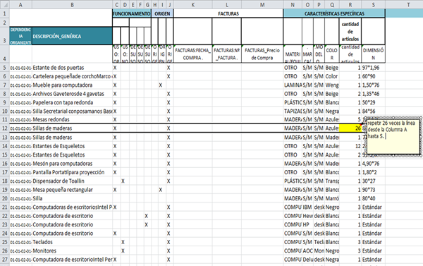 Chicos nueva en esta área, les comento: actualmente estoy haciendo un inventario. Lo que requiero es que la línea de caracteristicas y descripción del activo se repita, cuando :
