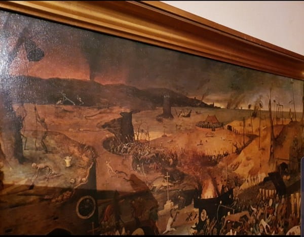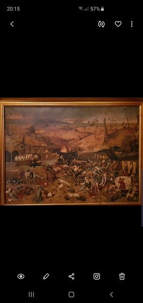 He encontrado este cuadro y al limpiar el marco me he dado cuenta que hay una etiqueta que pone Museo del Prado. El cuadro es " El triunfo de la muerte" de Bruegel Pieter. Me gustaría saber si alguien sabe el porque de está etiqueta y cual puede ser su valor. Las medidas son 75 X 54.