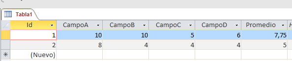 En access como sacar promedio entre varios columnas y el resultado poner en otra columna