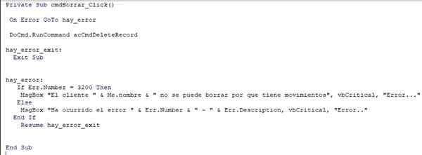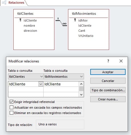 Señores buenos días. Mi pregunta es la siguiente: Tengo dos tablas, una llamada clientes y la otra movimientos: Clientes (IdCli, Nombre, Direccion etc) y Movimientos (Idmov, IdCli,, Cant, VrUnitario etc). Lo que busco es que si quiero eliminar un tercero busque el IdCli en la tabla movimientos y si lo encuentra que me saque un mensaje diciendo que el cliente no se puede eliminar por que ya tiene movimiento y si no tiene movimiento que lo elimine. Cabe decir que estas tablas están relacionadas por el campo IdCli.