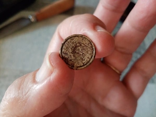 Tengo unas piezas metálicas antiguas como monedas o algo parecido ..Tienen motivos decorativos y palabras gravadas