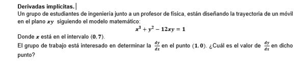 Derivadas implícitas. Un grupo de estudiantes de ingeniería junto a un profesor de física, están diseñando la trayectoria de un