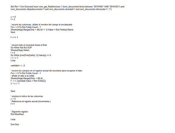 Macro para ejecutar un procedimiento almacenado con vba y copiar datos en un libro excel