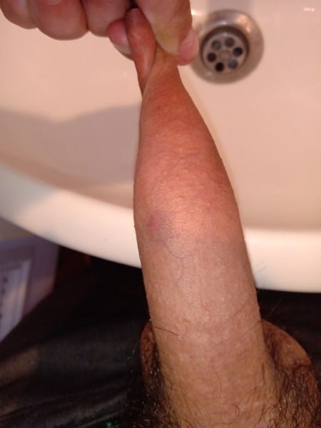 Tengo una mancha morada Con un punto rojo en el medio en la parte central de mi pene me gustaría saber qué es