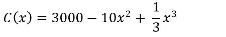 La función de C(x) de una marca alimenticia de la empresa vinícola, está dada por: C(x)=3000-10x^2+ 1/3 x^3