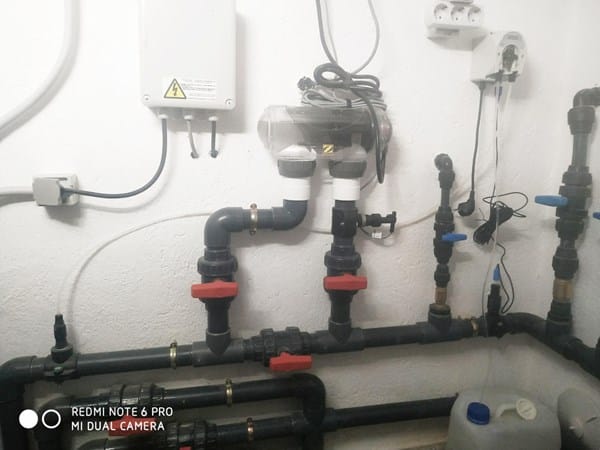 Dejé el clorador salino en producción al 10% ya que la piscina tiene persiana y la bomba peristáltica configurada a 7'3 y en modo alcalino para que inyectara ácido cuando estuviera por encima de este valor, y puse 2 horas de funcionamiento diarios.