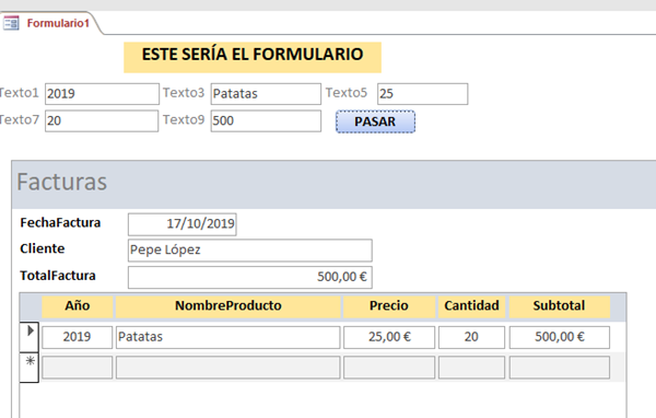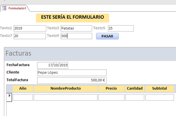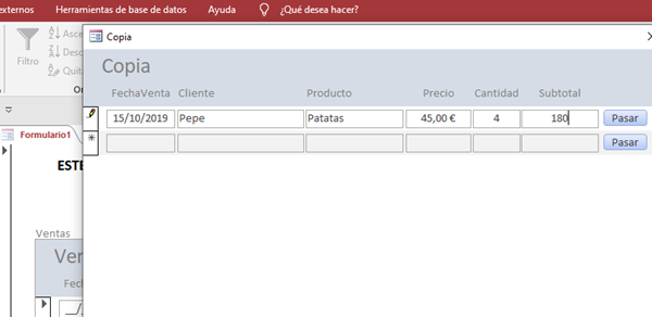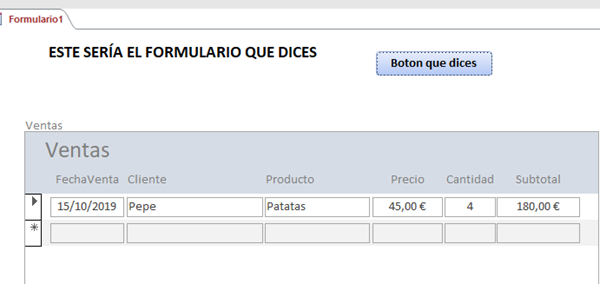 Tengo un formulario denominado Subpresupuesto con un botón que al pulsarlo abre un formulario independiente (Formulario_Emergente_Añadir_Subpresupuesto) para dar valor a ciertos campos de ese SubFormulario_Subprsupuesto y cree un registro.