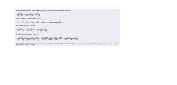 Amigos del foro necesito revisen este ejercicio de suma de fracción algebraica, ya que el resultado que a mi me da es totalmente distinto al del apunte.