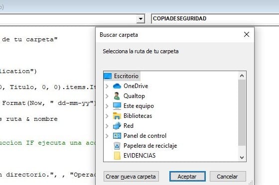 MsgBox "Ha seleccionado la siguiente ruta COPIA DE SEGURIDAD " & ruta