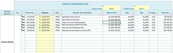 me gustaria que me ayudaran con esta formula, estoy haciendo una busqueda en una hoja excel donde tengo asi distribuido las columnas fechas/numero de factura/vendedor1/vendedor2/vendedor3, en esta formula solo puedo buscar entre dos fechas pero me falta la condicion del vendedor: SI.ERROR(INDICE($A$8:$B$123;K.ESIMO.MENOR(SI(($A$8:$A$123<=$K$4)*($A$8:$A$123>=$I$4);COINCIDIR(FILA($A$8:$A$123);FILA($A$8:$A$123));"");FILA(B1));COLUMNA(B1));" ") me gustrari que me ayudaran con esta formula para buscar el numero de factura entre dos fechas y el vendedor, otro es que si el vendedor aparece o no aparece en la columna de VENDEDOR1 lo busque en la columna de VENDEDOR2 y VENDEDOR3, en una venta puede haber hasta 3 vendedores, me interesa es que busque sus facturas donde el vendedor este y queria saber si esta formula se puede obtener los datos desde otra hoja, ejemplo: hoja1 listado de ventas, hoja2 la prenomina