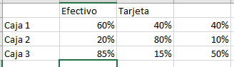 - Sabiendo que ha pagado en efectivo, ¿cuál es la probabilidad de que haya pagado en la caja 3?