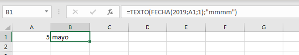 Función mes. Si escribo el 1 en una casilla, en otra escriba la palabra "enero"...