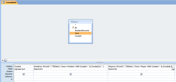 Tengo una tabla con nombre persona, sexo (Hombre o Mujer) y Ciudad.