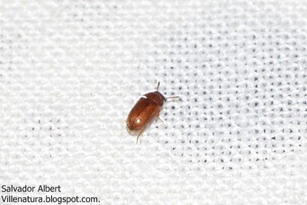 Son muuuy parecidos a los gorgojos que salen en las bolsitas del te, en la harina, en el pan rallado, etc, solo que los nuestros estan en el salon, sobretodo, bajo la puerta(de madera)que da al balcon, imagino que los encontramos ahi porque suelen estar apegados donde mas luz encuentran, ya que por el dia tenemos abierta la persiana aunque no el cristal, y a la noche los vemos bajo la lampara.