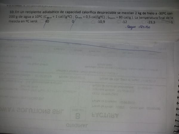 (200 x 10) + (200 x 80) + ( 200 x 0.5 x Tfm) = 2200 ( Tfm + 30).........resolves esta expresion y tendrias que llegar al resultado - 23°C..