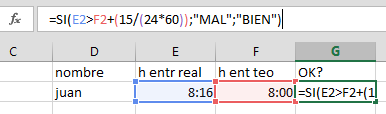 ¿Mi pregunta es como debo generar la fórmula para que me contemple esos 15 minutos y no lo coloque como que no cumplió el horario?