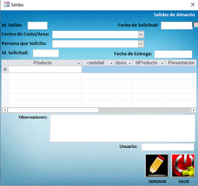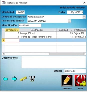 Así, si tengo el formulario Solicitudes de almacen
