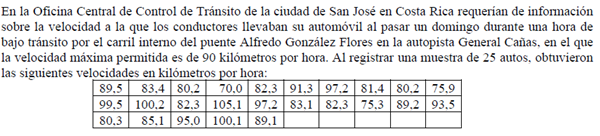 media de la velocidad de los 25 automóviles para estimar la verdadera velocidad promedio a la que los