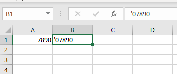 Tengo un campo de números que debe tener los ceros a la izquierda, en la celda le pongo la fórmula ="0"&A1 y se ejecuta perfecto.. Pone el cero a la izquierda (ej; 07890) y guardo el fichero como un .csv y cuando lo vuelvo abrir el cero de la izquierda desapareció me aparece como (ej:7890)