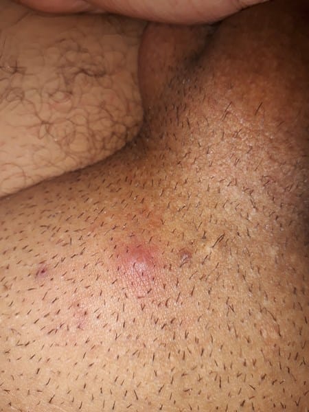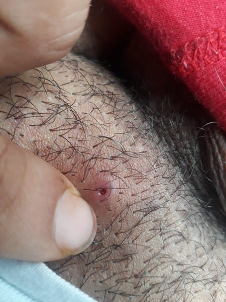 Escribo porque aproximadamente 3 semanas sentí un grano en el pubis pero no drenaba, me asuste mucho y lo moleste mucho como por dos semanas y se me puso así.