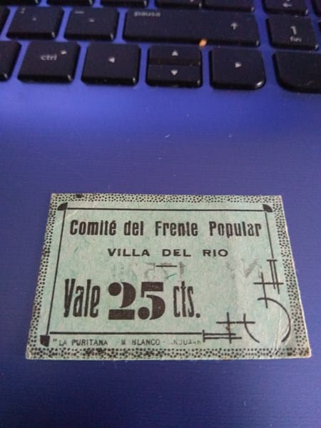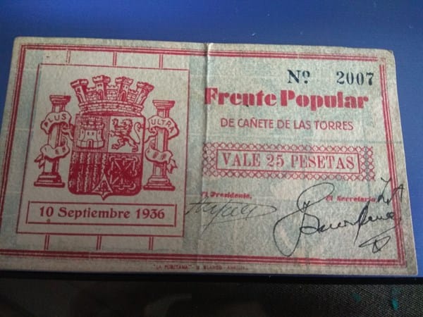 Información sobre un billete del frente popular del pueblo Cañete de las Torres