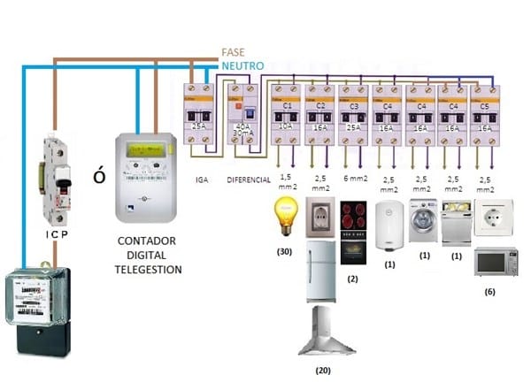 Estoy montado el cuadro eléctrico de la vivienda y separando todo por zonas. 3 zonas de fuerza 3 zonas de iluminación y electrodomésticos todos por separados,