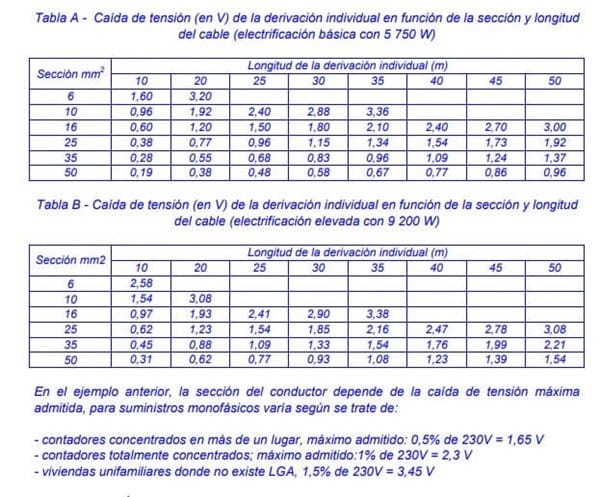 Para el caso 2) se razona con el criterio de caída de tensión mínima del alimentador. Esto también puede estar tabulado, en función de la potencia P ( o de la corriente I y su cos fi) a transmitir.