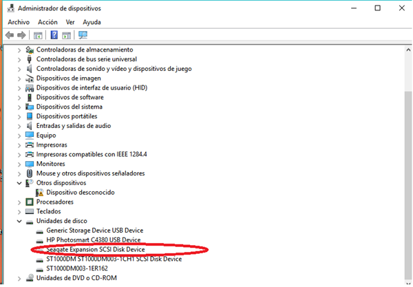 Tengo un disco externo Seagate con usb 3.0, es el que he empleado desde que lo compré para poner las películas y series en la tv, de la TV nunca lo he sacado ordenadamente y del PC en no muchas ocasiones, el caso es que el TV no me ve el contenido ahora, y en el ordenador lo veo en el administrador de dispositivos o en el icono de Expulsar dispositivos, pero no lo puedo ver en administrador de discos, por lo que ni lo puedo formatear, ni ponerle letra, ni nada de nada, ¿me pueden ayudar de alguna manera a recuperar el TB de almacenamiento que tengo perdido?