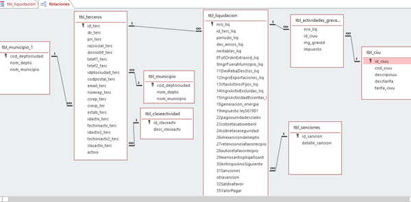 La tbl liquidación es tabla principal es subformulario es tbl actividades gravasas y tbl ciuu no encuentro el error ...