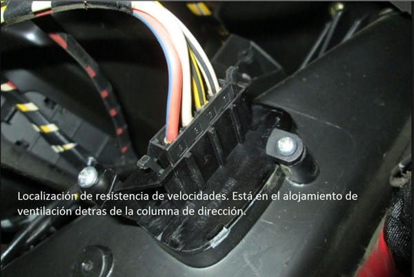 Me gustaría saber dónde está ubicada la resistenca del ventilador de un mercedes vito cdi del 2003, tengo el problema que sólo me funciona una velocidad, osea que sólo me entra aire caliente en una velocidad las otras no, y me han dicho que es la resistencia del ventilador.