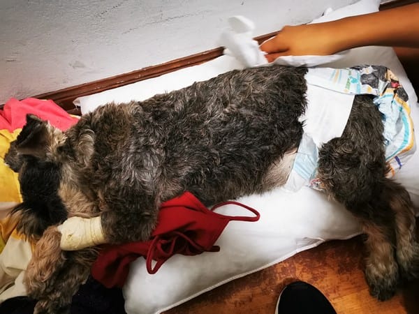 Tengo un Schnauzer de 10 años de edad, todo andaba bien hasta el día de ayer que regresando del trabajo intentamos sacarlo a hacer sus necesidades, lastimosamente nos dimos con esa sorpresa de su incapacidad de moverse, lo llevamos al veterinario y según el doctor nos comento que no ha perdido sensibilidad en la pata trasera derecha, que quizá sea un derrame cerebral o algo parecido pero estamos muy preocupados ya que desde entonces estamos todos muy apenados por esta situación tan repentina...