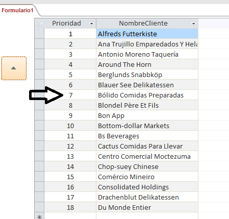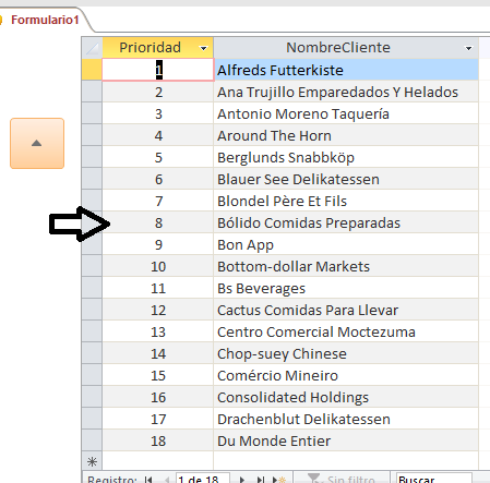 Cómo cambiar el orden o posición de un registro concreto que se muestra en vista hoja de datos en un subformulario