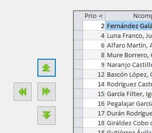 Lo que quiero hacer (y no doy con la tecla) lo explico con un ejemplo: imaginemos que el alumno que tiene la prioridad 17 quiero que pase a la la posición 16. Tendría que posicionar el cursor en ese registro y pulsar el botón verde de arriba para que fuera subiendo en la posición de la tabla. De esta forma, según va subiendo, el número que está en el campo [prioridad] pasaría a 16, 15... Y así sucesivamente cada vez que pulse el botón.