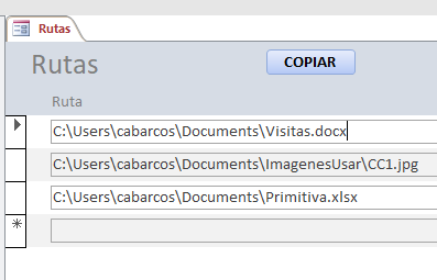 Copiar archivos con access. Tengo una tabla con la ruta de varios archivos. Quiero copiar esos archivos a otra carpeta