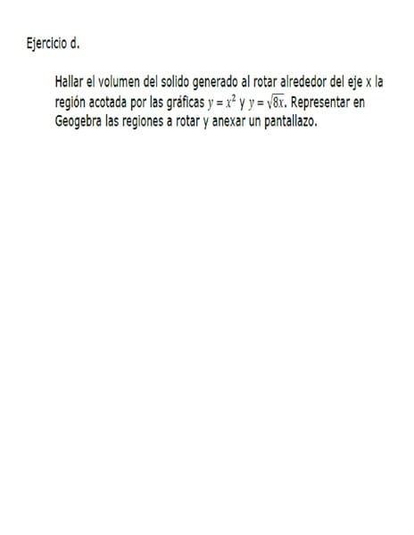 Hallar el volumen del solido generado al rotar alrededor del eje por la región acotada por las gráficas?=?2 y?=√8?. Represen