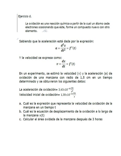a. Cuál es la expresión que representa la velocidad de oxidación de la manzana en un tiempo t